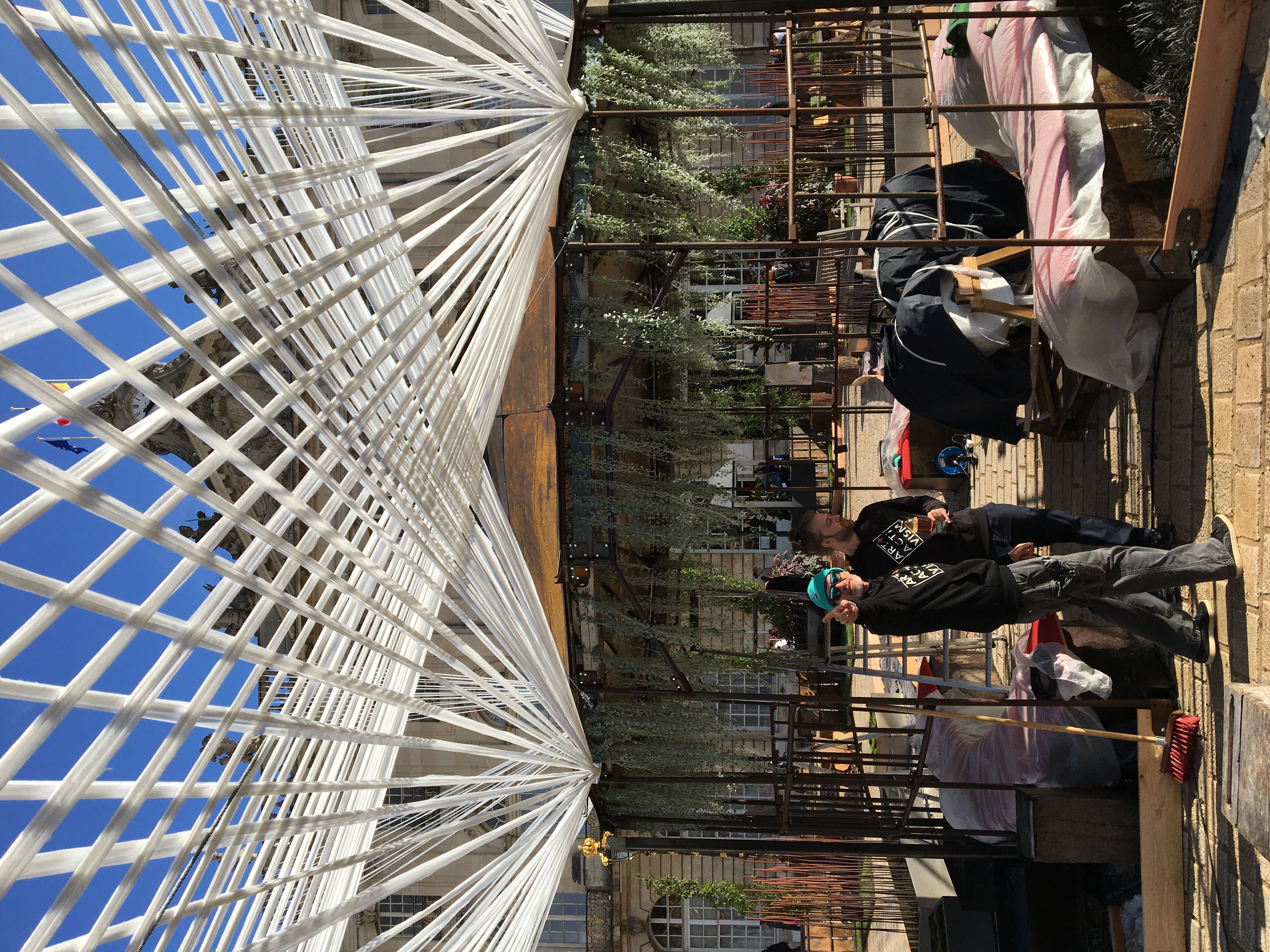 Designed specifically for this site, the installation entered into dialogue with the ephemeral landscape of the garden, extending its breath all the way to the golden stone of the Town Hall.